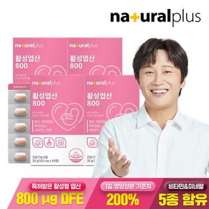 [내츄럴플러스] 활성 엽산 800 60정 3박스(6개월분) / 5-MTHF 임산부 비타민 미네랄 5종