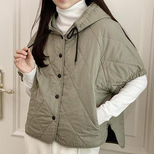 H스타일(DK)다야또또패딩반팔점퍼 겨울 여성 패딩점퍼 반팔 후드 누비 자켓 아우터