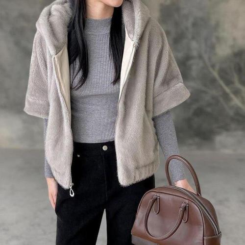[옷자락]여성 인조모피 나그랑 부드러운 겨울 반팔 후드집업