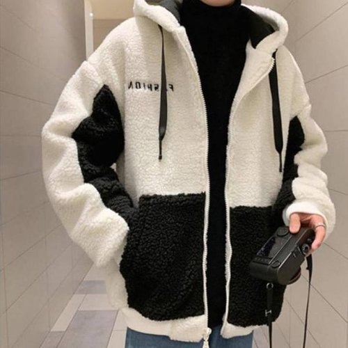 [셀러허브_여성트랜드패션]양털 겨울 남자 루즈핏 아우터 후드집업