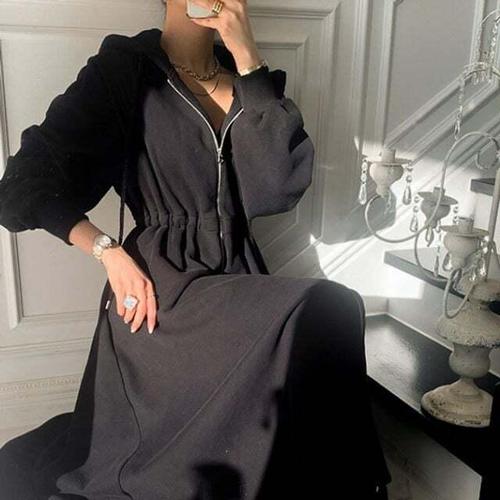 [엄지척]밴딩 F64107 2컬러 앞지퍼 롱 후드원피스 후드집업_19805749_667501