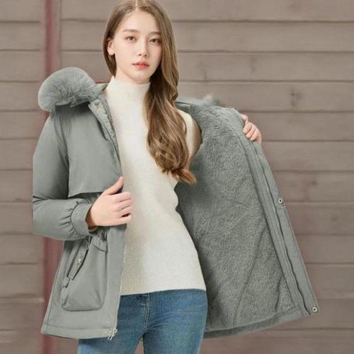 [신상오픈런]여성 심플 후드 미디 패딩 안감 퍼 허리끈 겨울 코트
