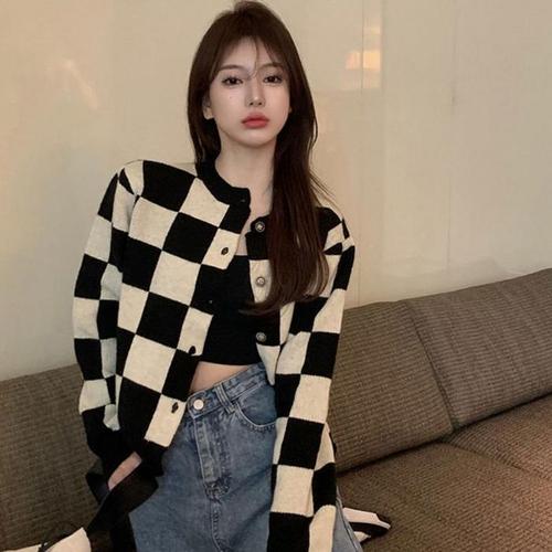 ONM 격자무늬 롱 가디건 체형커버 가능한 트렌디 후드