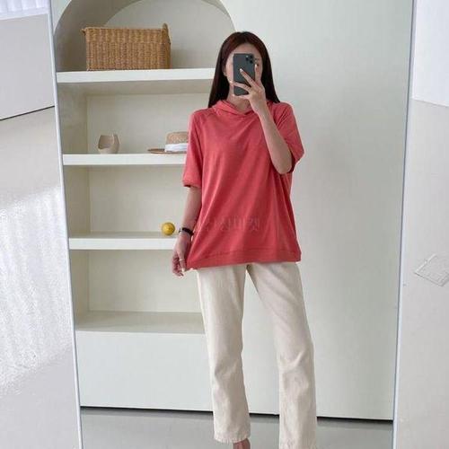 [로즈엘리][5컬러] 여름룩 깔끔하고 편한 후드 반팔티셔츠