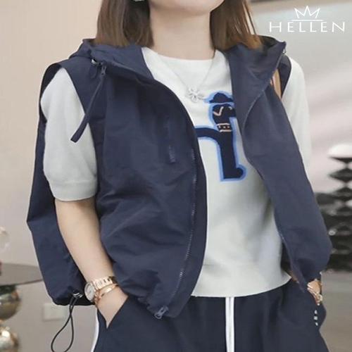 [헬렌]헬렌 조끼 바람막이 후드 집업 베스트 캐주얼 러닝룩