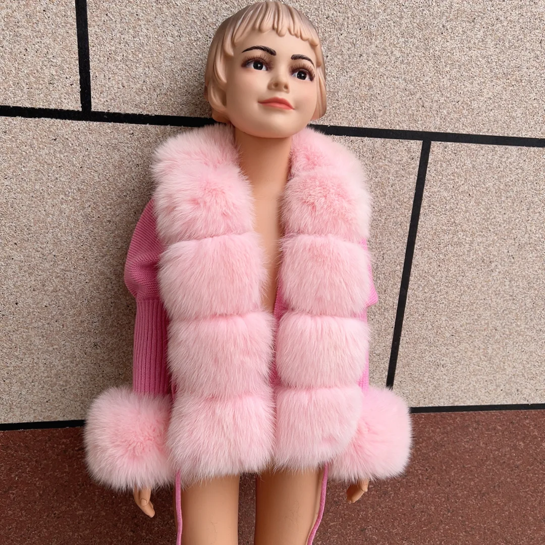 HUA QIU MEI SI 아동용 천연 여우털 가디건 및 너구리털 가디건 가을 겨울 아동용 털 재킷