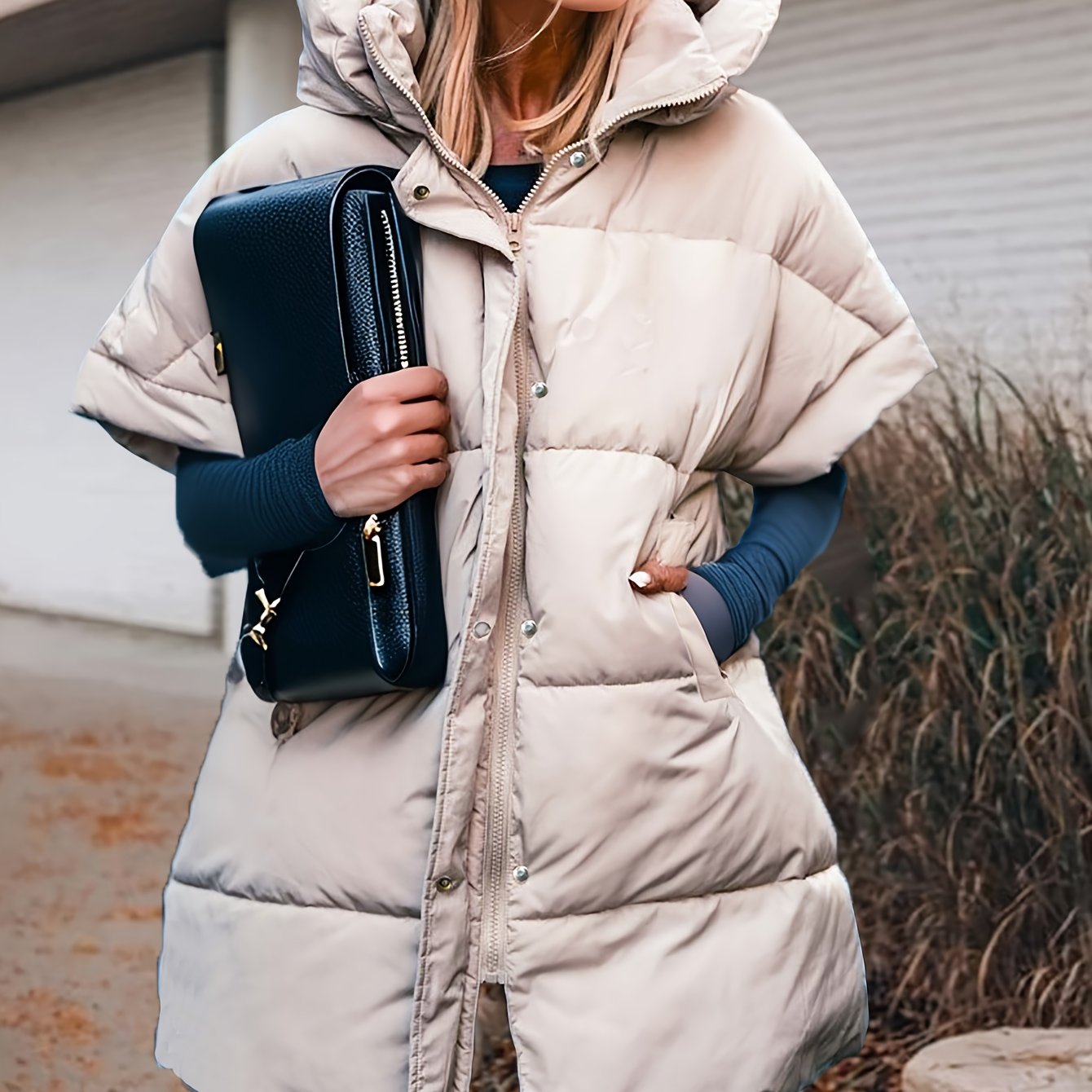 TEMU 여성용 라이트 그레이 반팔 조끼 - 캐주얼 패딩 지퍼 포켓, 드롭 숄더 디자인 가을/겨울 레이어링 필수품, 계절 패션, 구조적 외관