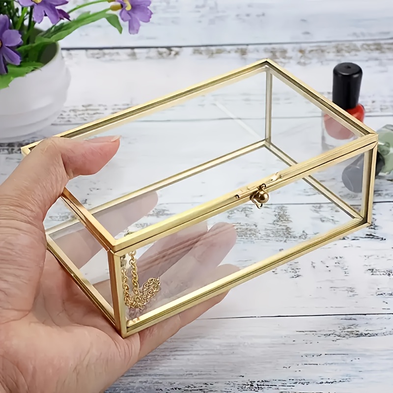 TEMU 빈티지 유리 기념품 상자, 직사각형 모양, 보관 및 보관용으로 설계된 주얼리 디스플레이 상자. 이 장식 상자는 화장대, 홈 데코, 주얼리 상자에 적합합니다.