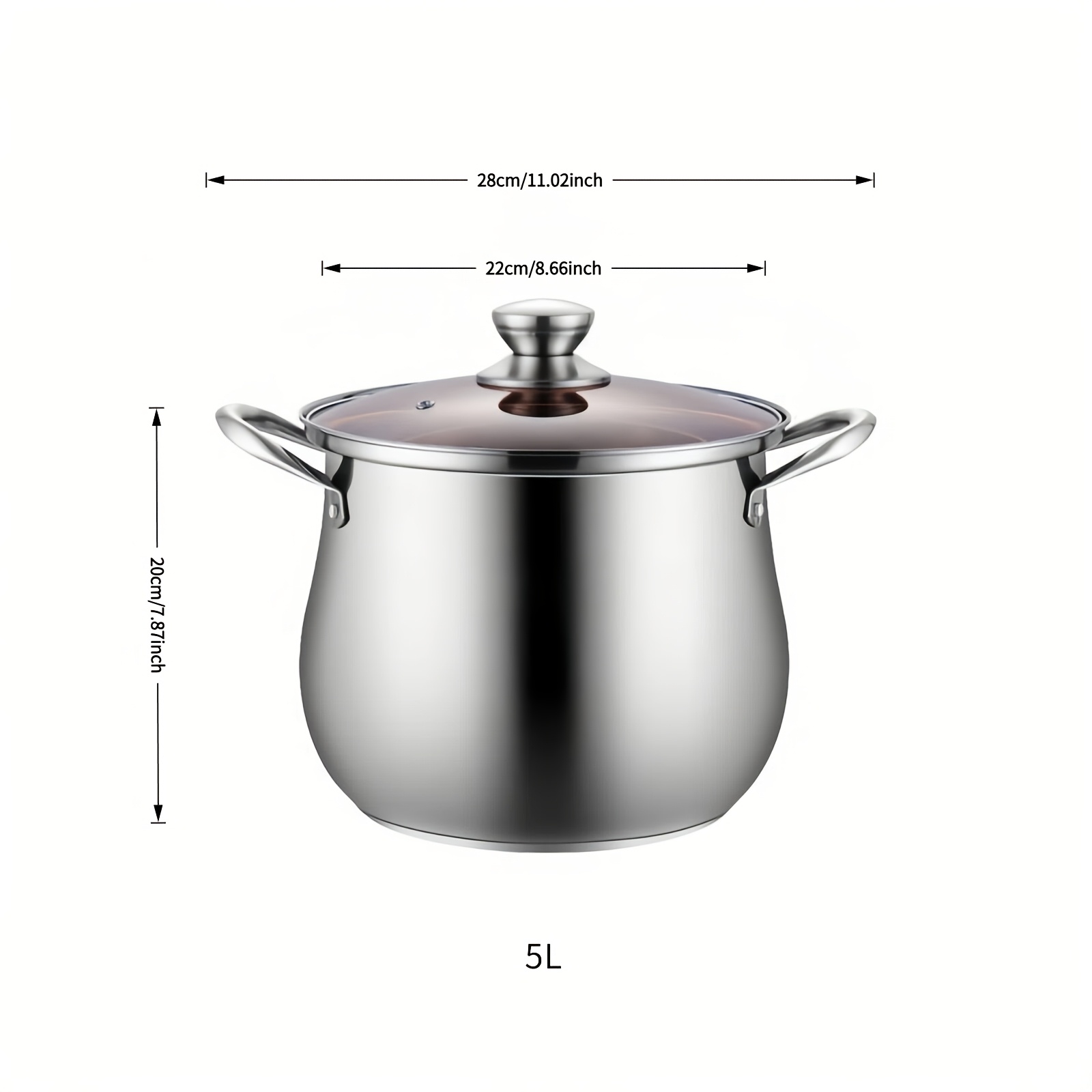 TEMU 가정용 인덕션 쿠커용 대용량 스테인리스 스틸 요리 냄비, 두꺼운 넘침 방지 다용도 수프 죽 요리용 х, 찌개 냄비