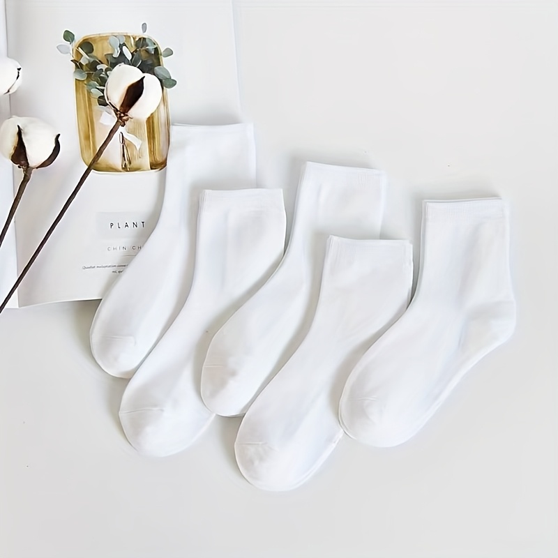TEMU 여성용 솔리드 컬러 미드캐프 양말 5켤레 세트, 블랙/화이트/그레이 색상