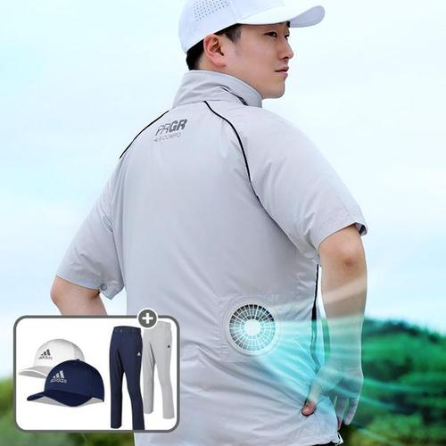 [프로기어]프로기아 PRGR 에어콤포 카라 반팔 집업 선풍기 쿨링 조끼 터치 팬 세트+코디용품
