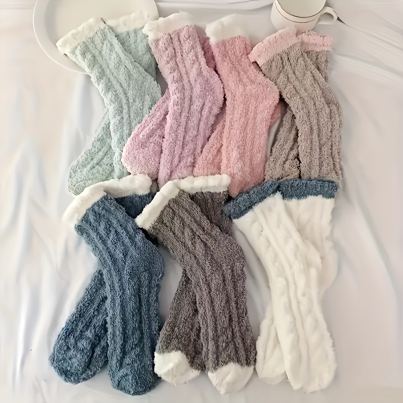TEMU 10개입 여성용 코랄 겨울 양말 - 두꺼운 리브드 커프, 부드러운 플러시 방한 소재, 포근한 홈 숏 양말, 바닥 양말 - 그립 디자인, 심플한 편안함