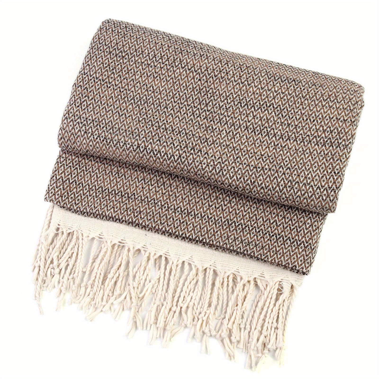 TEMU 1개 COTZRTOV 초대형 & 두꺼운 터키 스로우 블랭킷 - 부드럽고 따뜻하며 포근한 태슬이 달린 베이지 & 브라운 체크무늬 패턴, 소파, 침실, 캠핑, 해변 및 휴가에 완벽함 - 49"x71"/26온스