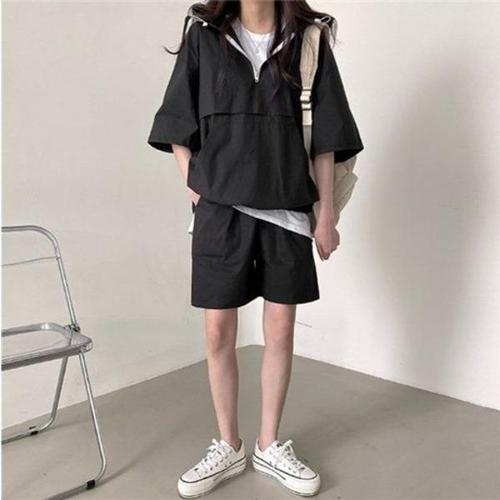 후드 반팔 트레이닝복 세트