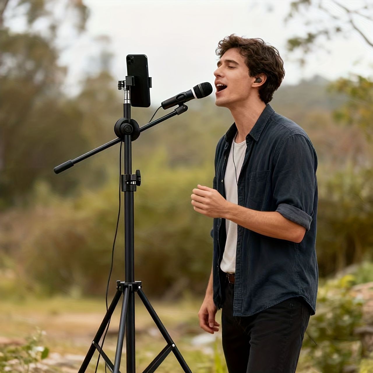 TEMU 3개 또는 6개 세트 삼각대 스탠드 - 스마트폰 & 마이크 호환, 조절 가능한 카본/스틸 & ABS 헤비듀티 포디움 스탠드, 1/4” 어댑터 포함, 라이브 스트리밍, 녹음, 노래방, 회의, YouTube, 대부분의 스마트폰 & 마이크 호환