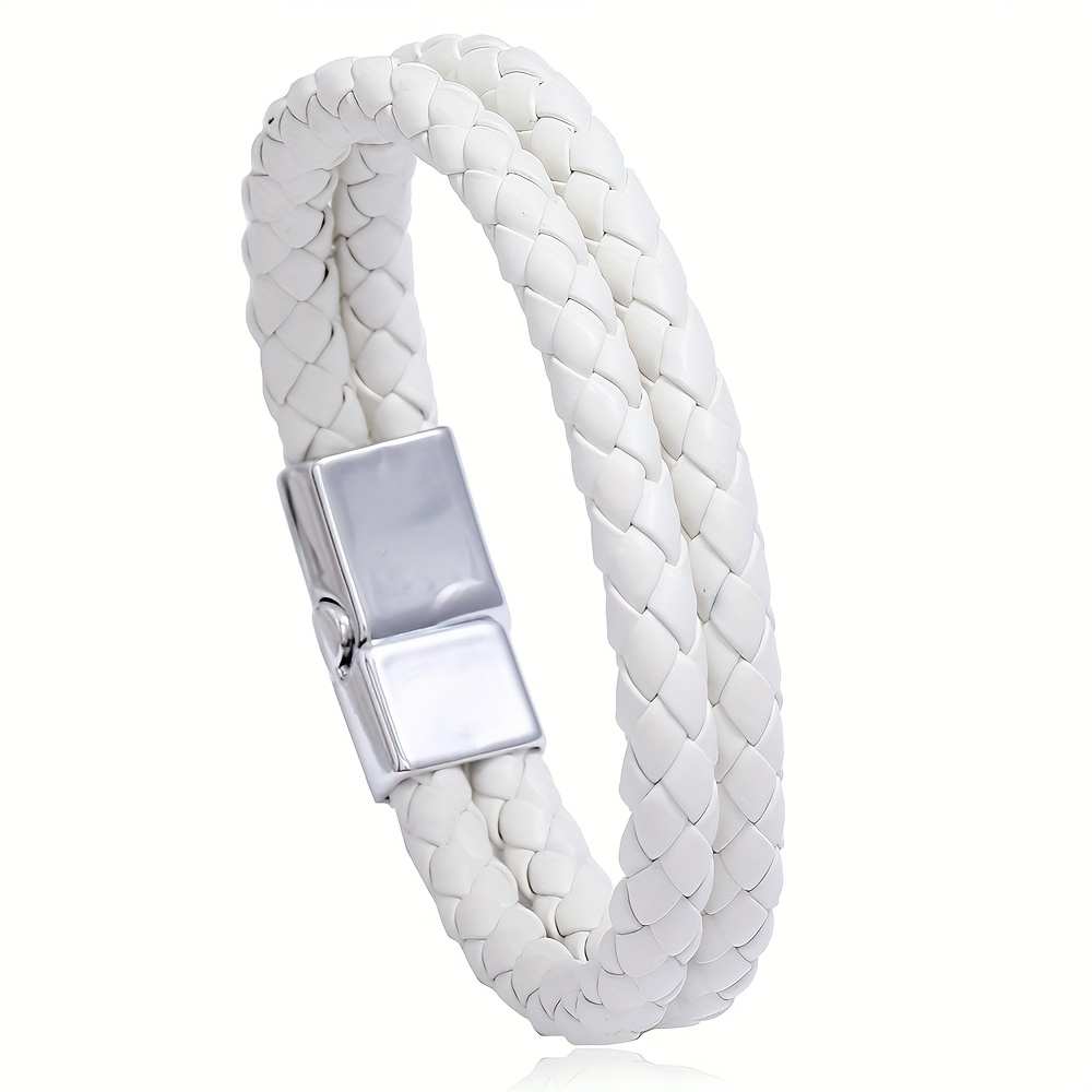 TEMU 남성 트렌디 레트로 우븐 더블 원형 팔찌, 간편하고 스타일리시한 인조 가죽 손목 밴드, 해외 직구 E-Commerce 소스