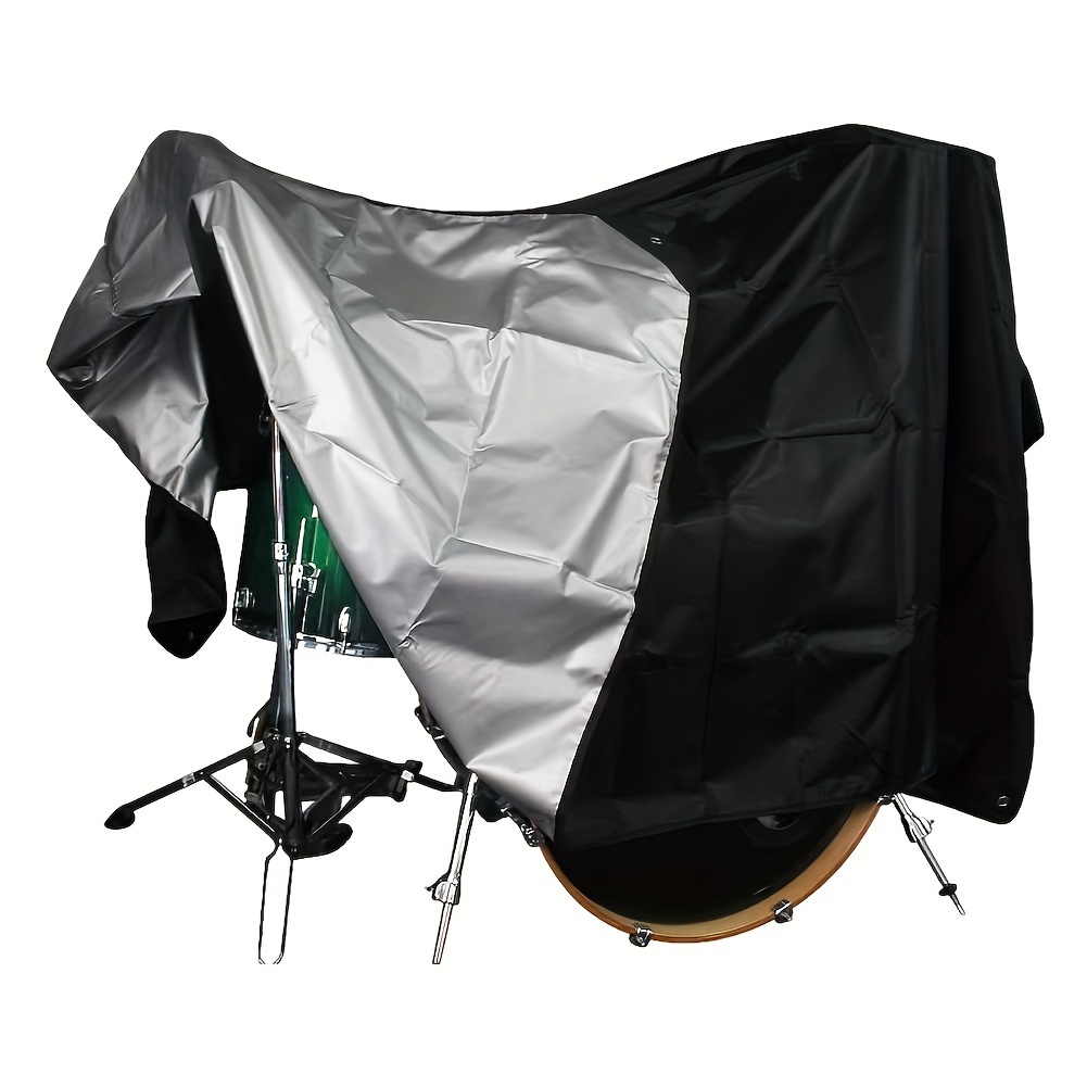 TEMU 드럼 커버, 은빛 옥스포드 천, 드럼 세트용 먼지 보호, 검정색, 공연용 악기 보호, 드럼 액세서리