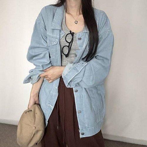 [모노무드]LMO 데님자켓 청바지 심플룩 재킷 유니크히트 루즈핏 여자 뉴
