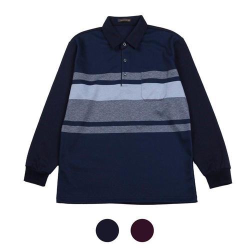 갤러리아_[파파브로] 겨울 남성 기모 잔줄무늬 배색 카라티셔츠 MB-KAK-855