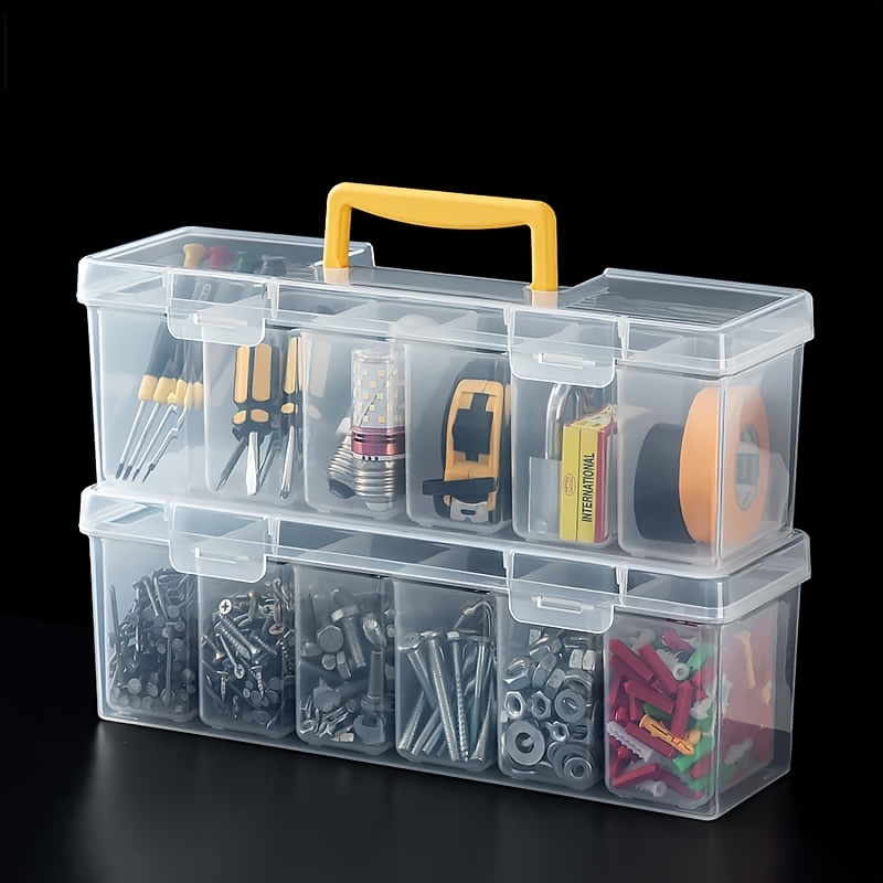 TEMU 14개 [작은 상자 12개 + 큰 상자 2개] 쌓을 수 있는 하드웨어 공구 보관 상자, 기능성 플라스틱 하드웨어 추가 정리함 상자, 탈착식 칸막이 공구 보관 상자, 손잡이 포함, 칸막이 디자인, 가정용품 및 자동차 공구에 매우 적합