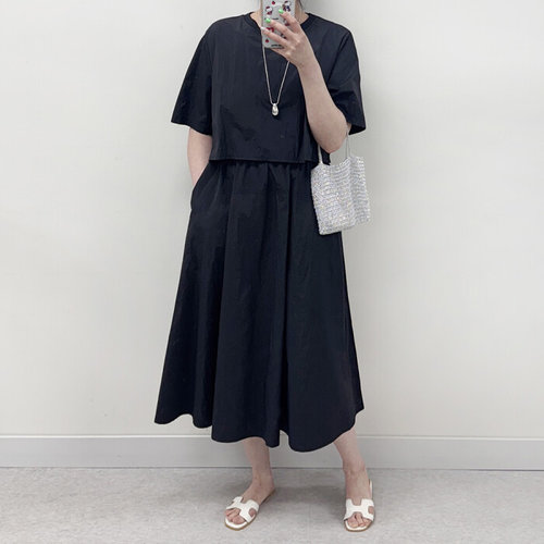 미즈큐즈 / 여름 바스락 투피스무드 밴딩 롱 아노락 원피스 빅사
