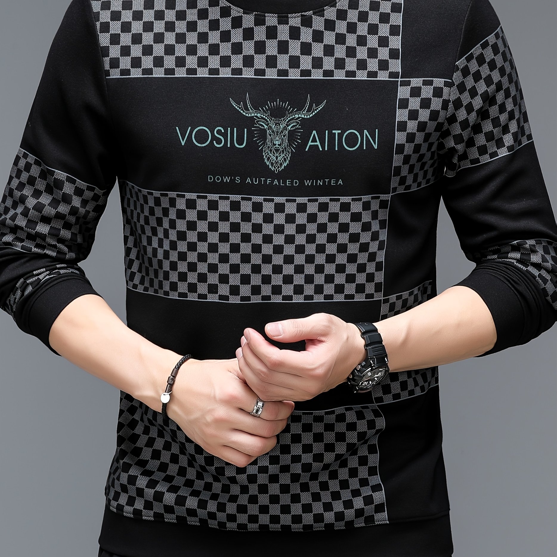 TEMU 남성용 캐주얼 긴팔 크루 넥 스웨트셔츠 "VOSIU AITON" 그래픽 프린트 - 부드럽고 신축성 있고 편안한 스포츠 및 레저용, 그에게 완벽한 선물, 일상적인 편안함 의류 | 스타일리시한 캐주얼웨어 | 중간 탄력 원단
