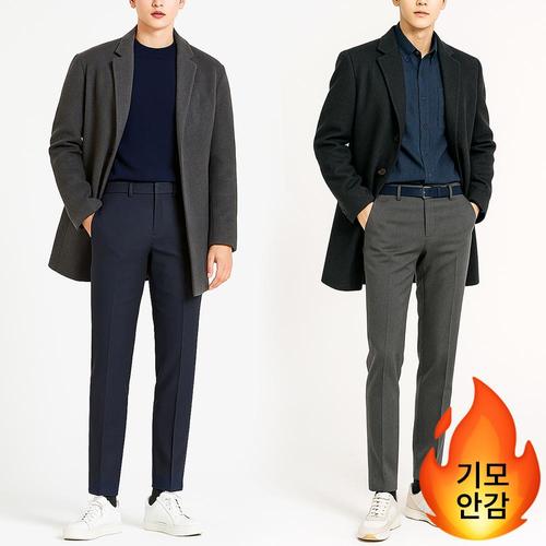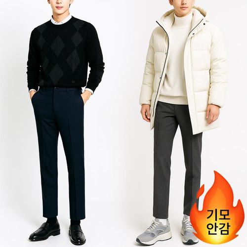 베이직 기모안감 심플 10부 스판 슬랙스 남자 남성 정장 일자 팬츠