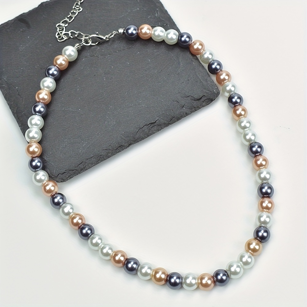 TEMU 여성을 위한 1pc 우아한 혼합 색상 비즈 목걸이 - 유리 재질, 일상 착용, 여행, 휴일 선물에 완벽, 캐주얼 의상 또는 특별한 기회에 이상적, 캐주얼 보석|우아한 목걸이|유리 비즈 목걸이