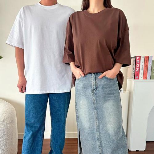 [옷자락]여자 남자 무지티 오버핏 라운드 16수면 반팔 티셔츠