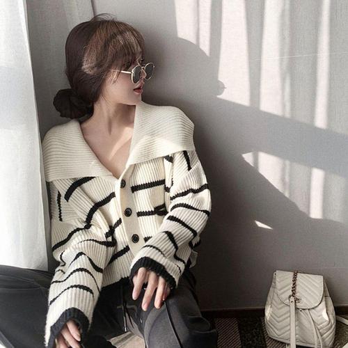 [셀럽하우스]여리 VMFQ1980 여리 핏 카라 브이넥 스트라이프 가디건 ivory