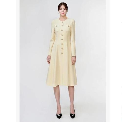 [미니멈]MZAGWO1980LY 라운드 버튼 플레어 원피스