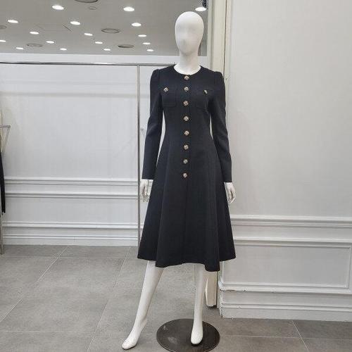 [미니멈]MZAGWO1980BK 라운드 버튼 플레어 원피스