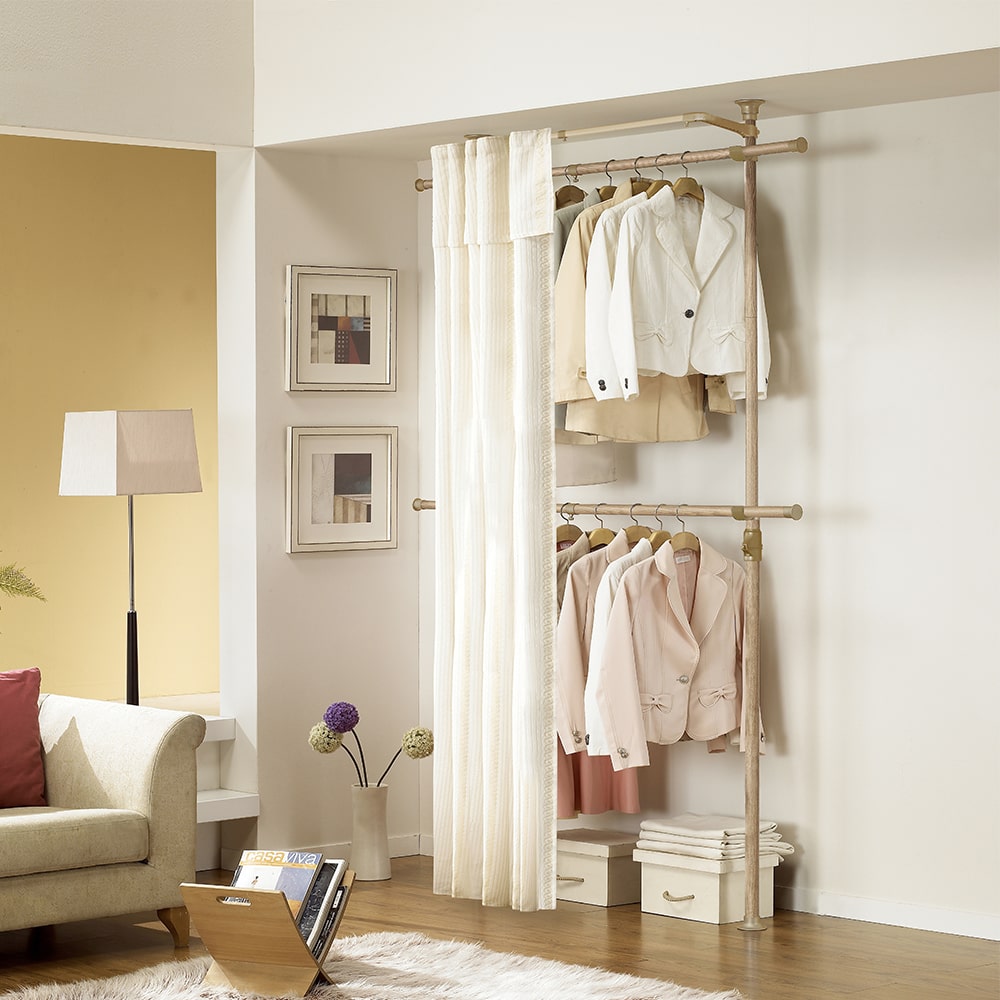 튼튼한 커튼 미니 원룸 행거 EO-212 옷걸이 2단 옷장 선반 시스템 행거