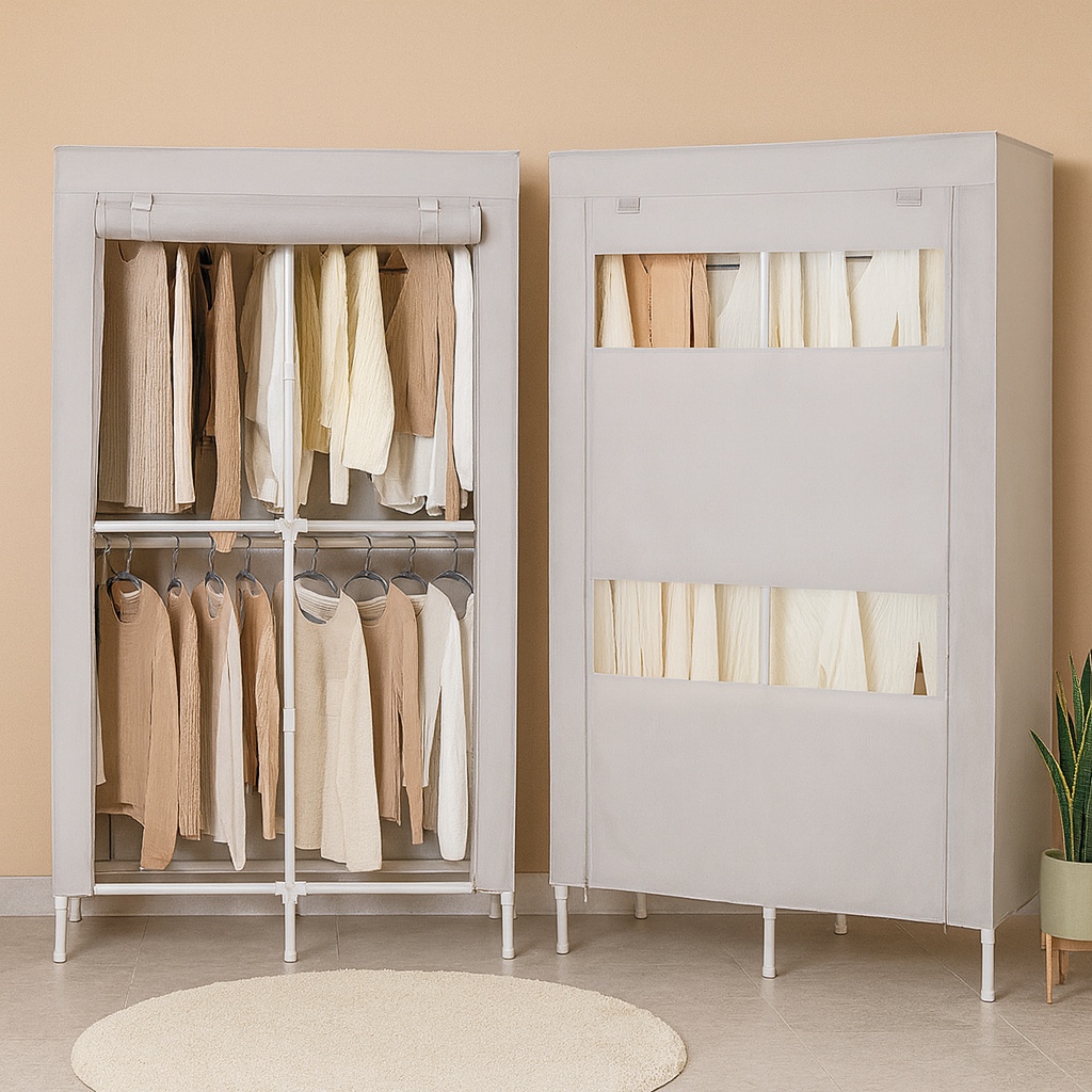 2단 간이 조립식 비키니 커버 부직포 행거 옷장