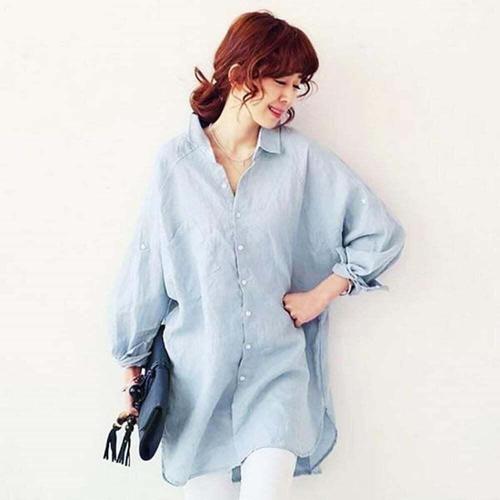 [셀럽하우스]데일리 EDTS2119 롱셔츠 베이직 여성 오버핏 무지