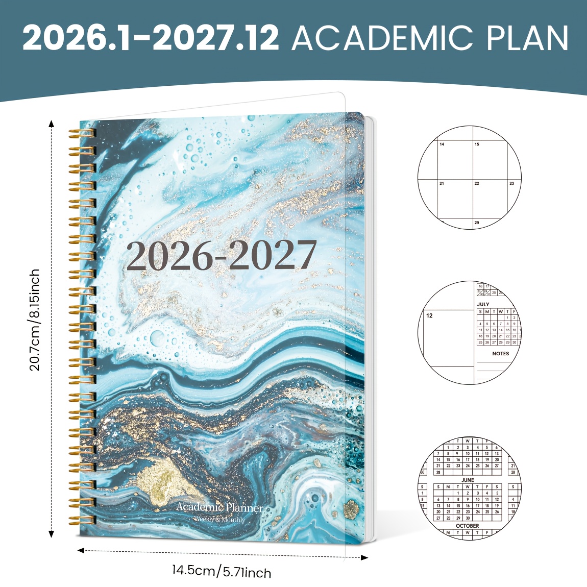 TEMU 2026년 1월부터 2027년 12월까지 2년 학교용 아카데믹 캘린더 – 넓은 그리드, 노트 & 깔끔한 디자인으로 공부와 생활의 균형을 위한; 선생님과 전문가에게 이상적 (청록색 커버), 스쿨플래너, 티처플래너, 플래너, 넉넉한 그리드, 플래너, 튼튼한 제본, 메모하기 플래너, 학술일기장
