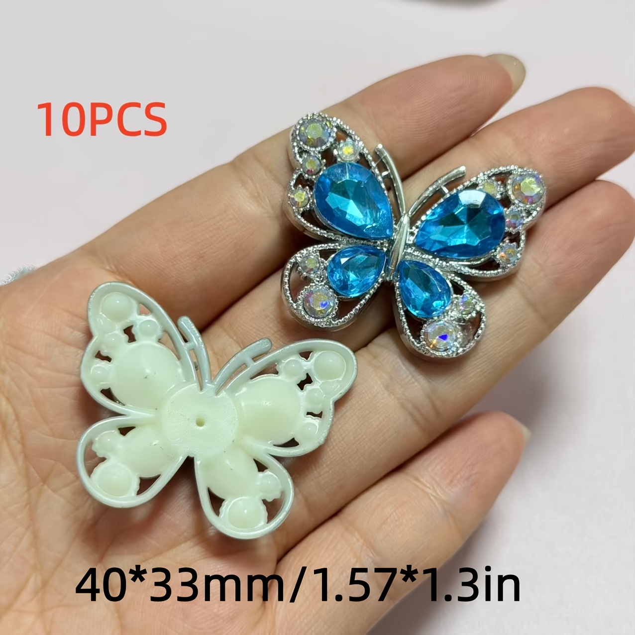 TEMU 화이트웨어 10개입 신상 레진 라인스톤 고급 핑크 블랙 퍼플 블루 블랙 레드 샴페인 그린 AB 컬러 나비 장식 참 스마트폰 케이스 신발 버클 헤어핀 보관함 메이크업 거울 물병 냉장고 스티커 추가 Kawaii 플랫 B