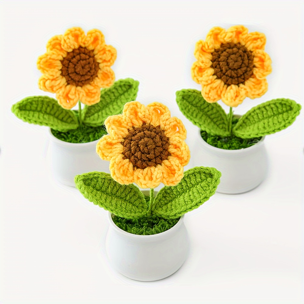 TEMU 1/3개 손으로 짠 화분 - 실물 같은 인조 패브릭 꽃, 흰색 화병 포함, 발렌타인데이, 어버이날, 부활절, 추수감사절 홈 데코레이션용 테이블 장식