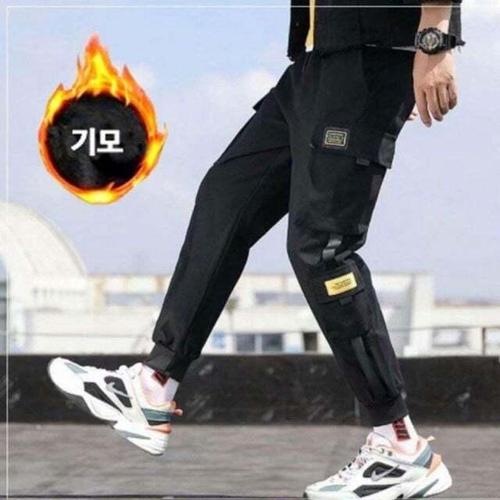 [셀럽하우스]남자 XXLE2855 겨울 스타일 검정 허리밴딩 기모 고품질 조거 남