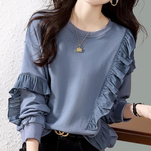 제로투올샵2 / 여성 가을 루즈핏 플레어 캐주얼 긴팔티 블루 XL