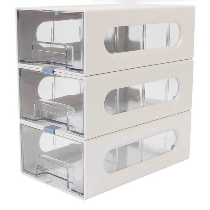 엄지척 (중형 3단) 다용도 수납함 투명 멀티박스 데스크정리