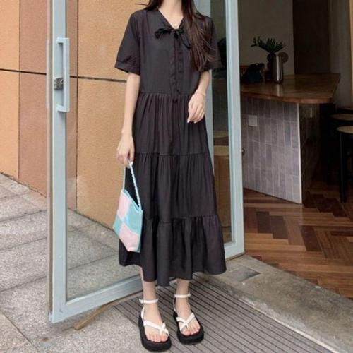 [모노무드]모노무드 SW02261101 리본 반팔 데일리 3단 원피스 클래식 캉캉 캐주얼 여