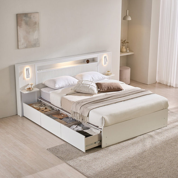 장인가구 [비밀특가] 장인가구 클리브 호텔 평상형 서랍 빅수납 LED 침대 프레임 K (높이 300)+포켓 (주문제작)