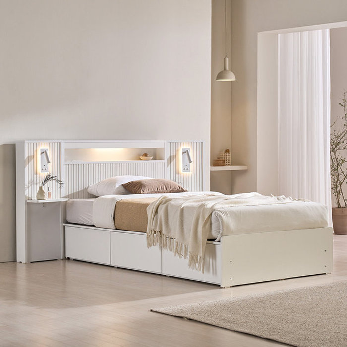 장인가구 [비밀특가] 장인가구 클리브 호텔 평상형 서랍 빅수납 LED 침대 프레임 S (높이 300)+본넬+조명 협탁2