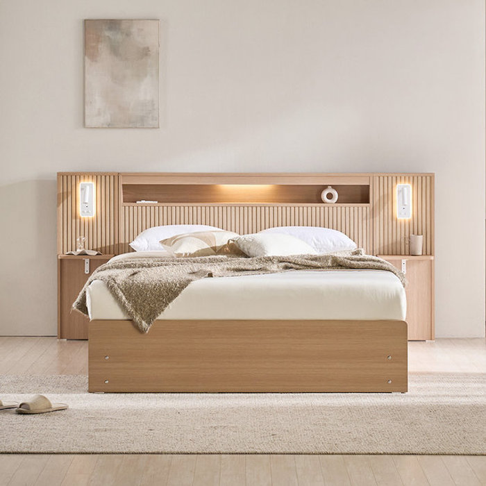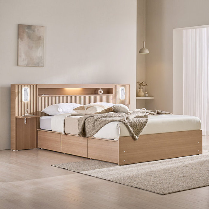 장인가구 [비밀특가] 장인가구 클리브 호텔 평상형 서랍 빅수납 LED 침대 프레임 K (높이 300)+본넬+조명 협탁2 (주문제작)
