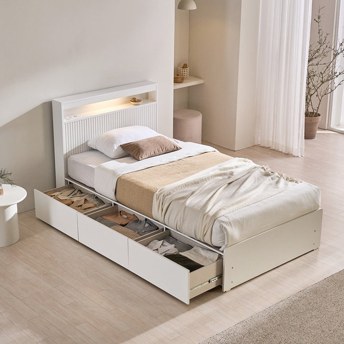 장인가구 [비밀특가] 장인가구 클리브 호텔 평상형 서랍 빅수납 LED 침대 프레임 S (높이 300)+포켓