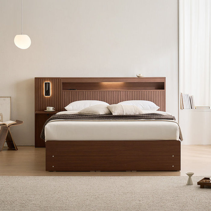 장인가구 [비밀특가] 장인가구 클리브 호텔 평상형 서랍 빅수납 LED 침대 프레임 SS (높이 300)+포켓+조명 협탁2
