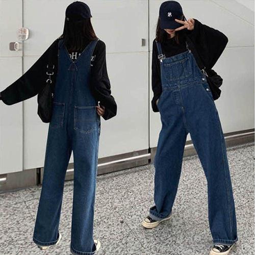 여성 진청 데님 오버롤 멜빵바지 통바지 와이드핏 WDB3261