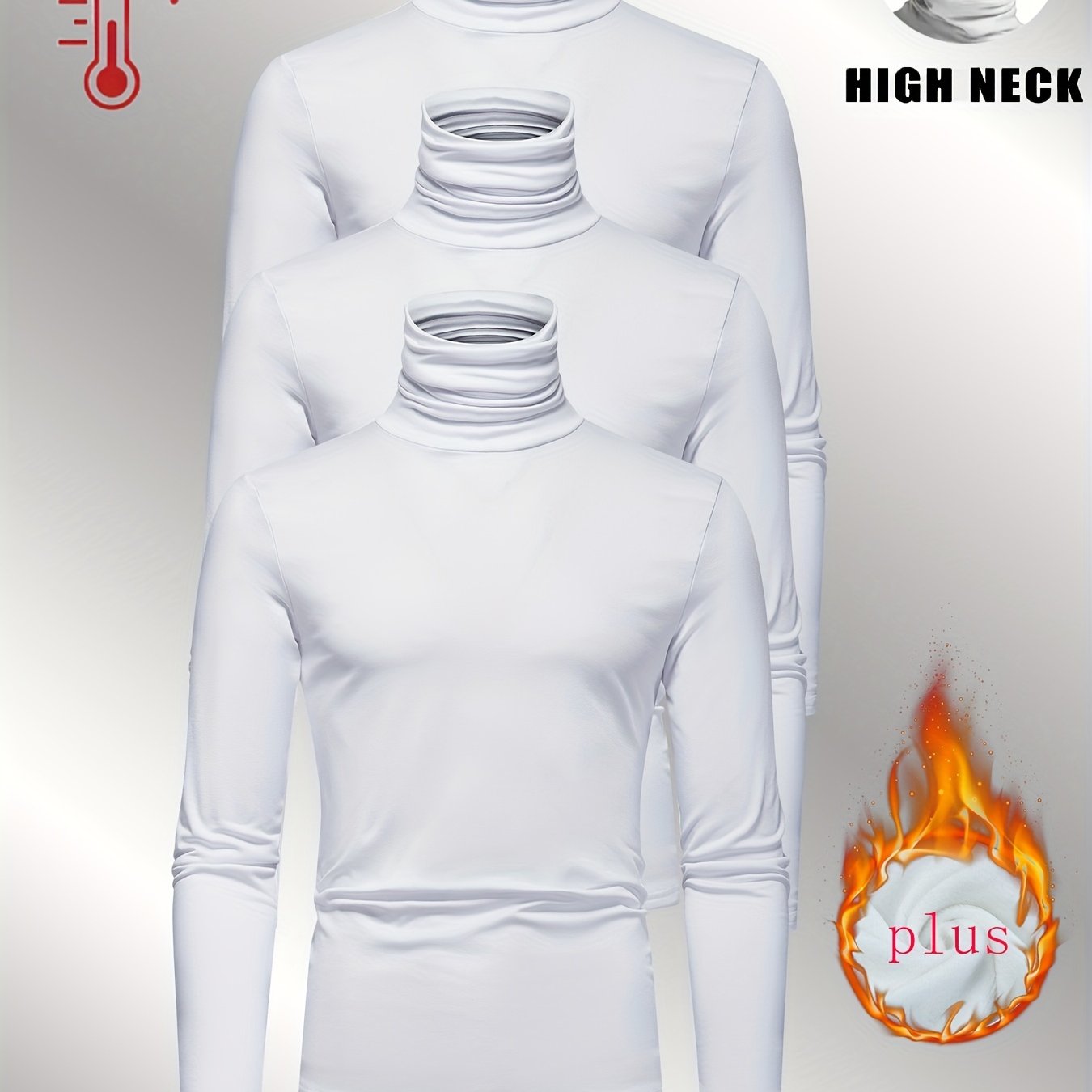 TEMU 3개입 플리스 터틀넥 긴팔 남성용 스포티하고 스타일리시한 따뜻한 핏 탑