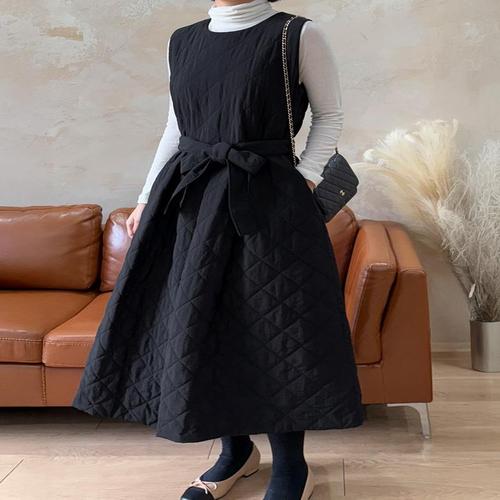 [디얼마미][디얼마미] 퀼팅 벨트 누빔 원피스 /마담 미시 중년 여성 빅사이즈 40대 50대